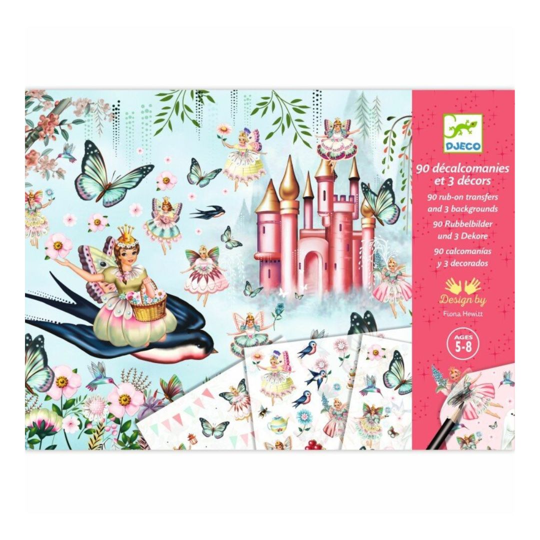 - Set includes 3 printed backgrounds (21 x 30 cm) and 3 sheets of transfers (90 rub-on images)