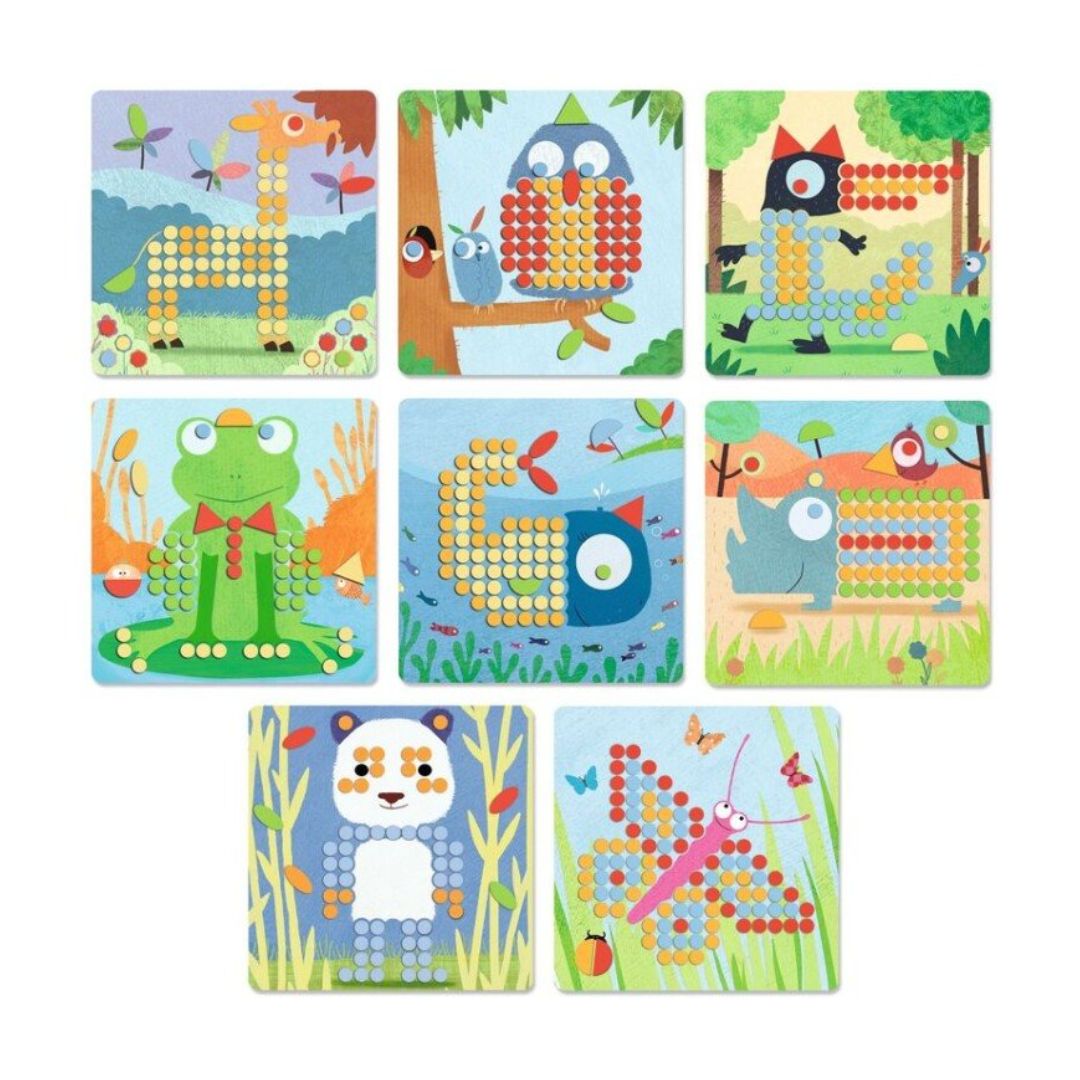 - Set includes 1 wooden board, 8 animal boards, 8 templates (4 double-sided cards), 230 coloured pegs