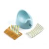 - Set includes a suitcase, a 32-cm baby doll (with soft fabric body and vinyl head, arms and legs), a pair of pyjamas, a hat, a wrap-over top, a pair of bloomers, a pair of booties, a nappy, a wipe, a feeding bottle and a bib.