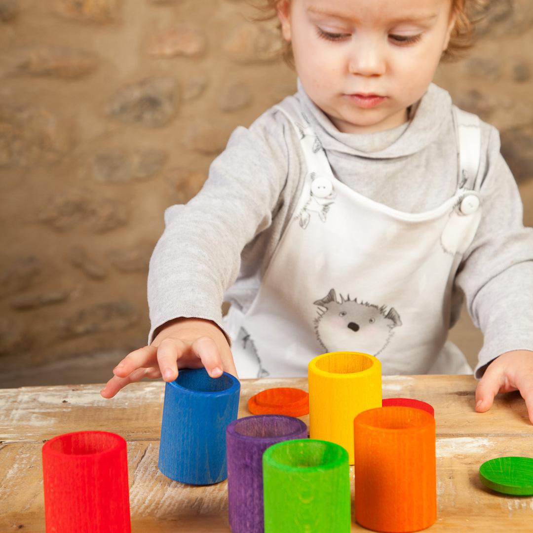 Grapat is a small family business from Catalunya, that realised from the desire of leaving the city behind to live in a natural, rural environment. Their wooden toys are inspired by a natural approach, and the idea that children need only a few key basics to create their imaginary worlds. Simple wooden figures, cups, bowls, loose parts and shapes in seasonal, naturelike shades are in the core of their range. At first glance, at least to the untrained adult eyes, they might look even a bit too simplistic – limited maybe to sorting and pattern-creating. But give it into your children’s hands and shortly you will realise they are pure magic. They inspire creative, imaginative play that fully absorbs them for hours. To grasp their essence better, maybe think of them rather as kind of art materials than conventional toys which pre-determine games or ideas. Just like a couple of blocks of crayon or pots of paint, Grapat toys inspire children create and express their wonderful inner worlds freely. Read more about the brand here or view the full Grapat range in our shop.
