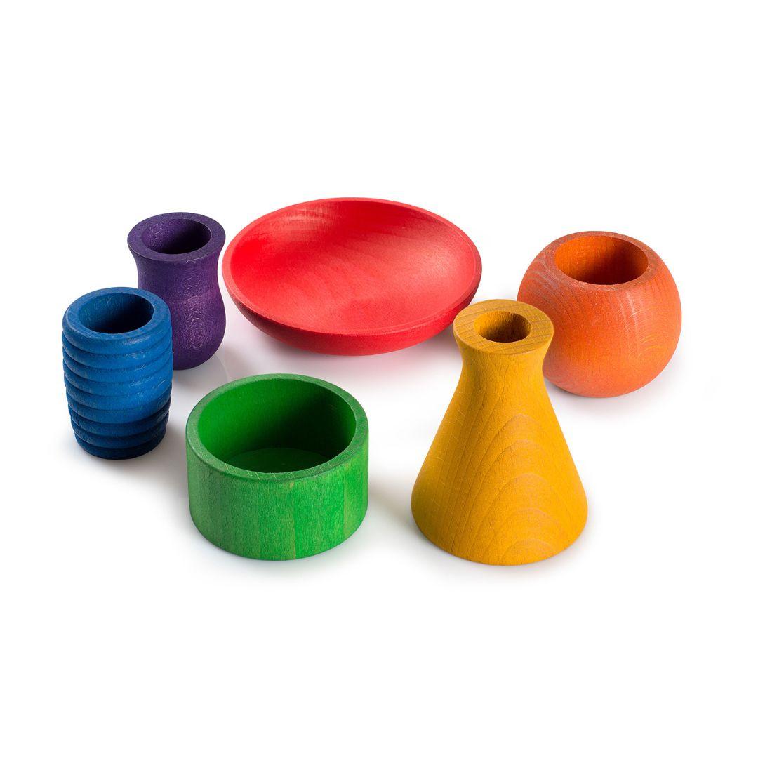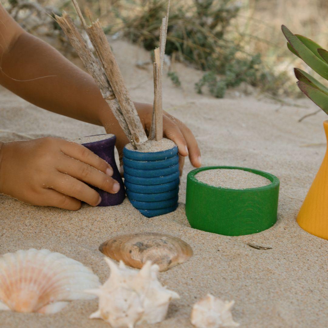 Grapat is a small family business from Catalunya, that realised from the desire of leaving the city behind to live in a natural, rural environment. Their wooden toys are inspired by a natural approach, and the idea that children need only a few key basics to create their imaginary worlds. Simple wooden figures, cups, bowls, loose parts and shapes in seasonal, naturelike shades are in the core of their range. At first glance, at least to the untrained adult eyes, they might look even a bit too simplistic – limited maybe to sorting and pattern-creating. But give it into your children’s hands and shortly you will realise they are pure magic. They inspire creative, imaginative play that fully absorbs them for hours. To grasp their essence better, maybe think of them rather as kind of art materials than conventional toys which pre-determine games or ideas. Just like a couple of blocks of crayon or pots of paint, Grapat toys inspire children create and express their wonderful inner worlds freely. Read more about the brand here or view the full Grapat range in our shop.