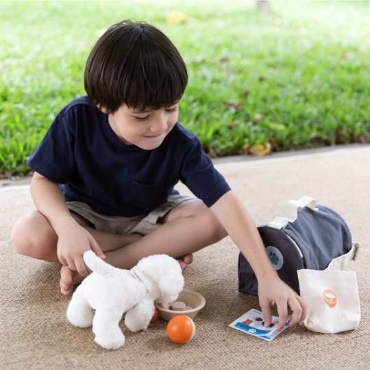 - This set includes pet food, a bowl, a brush, a pet toy (ball), a collar, a pet passport, and a pet carry case.
