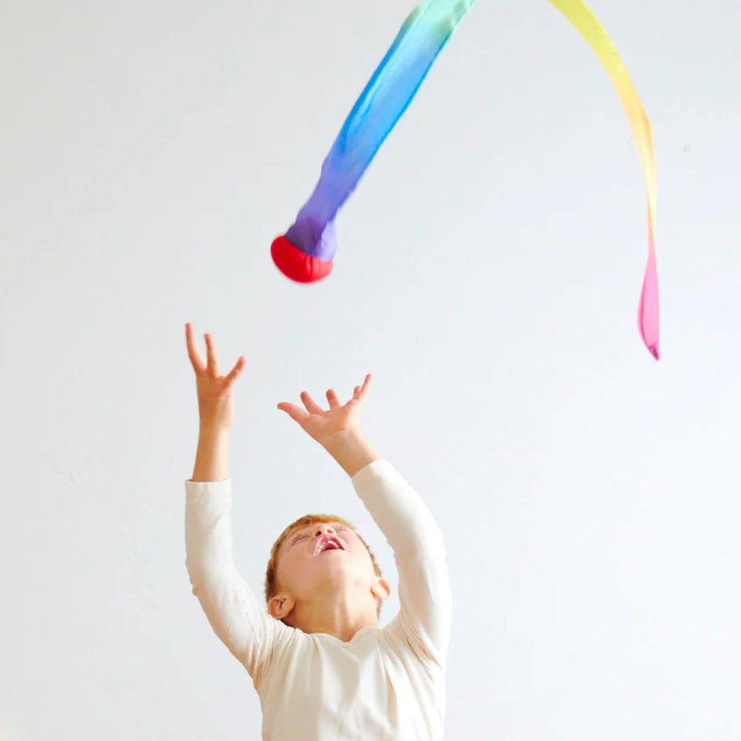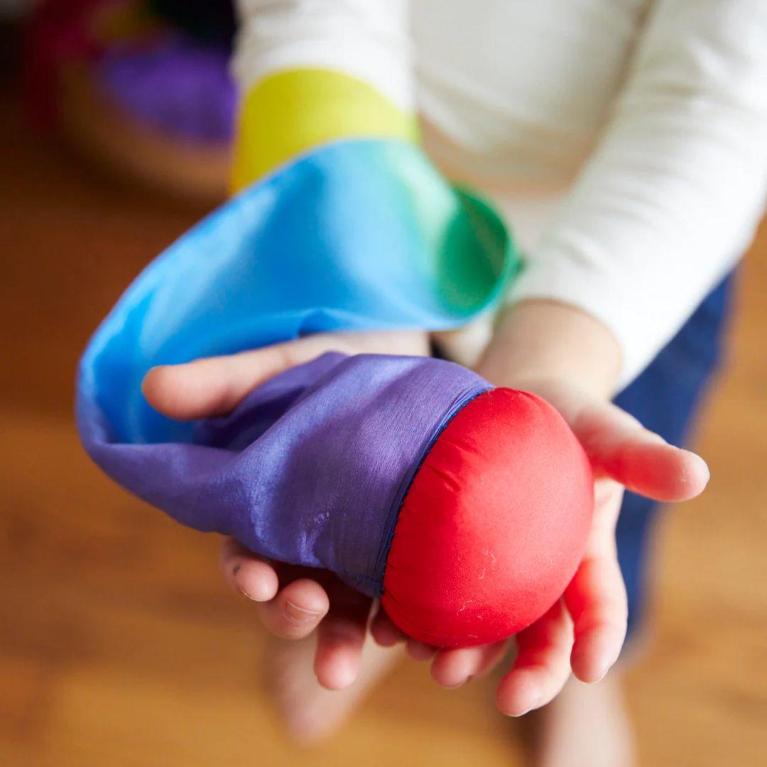 Sarah’s Silk is a US family owned company specialising in Waldorf inspired natural toys for more than 25 years. At Sarah’s Silks they believe in the magic of creative play, and the company’s toys have been staples of Waldorf kindergartens and playrooms for decades! The playsilks are the highest quality mulberry silk, coloured with vibrant, environmental-friendly dyes. Gentle on Mother Earth, silk is a natural fibre that breaks down easily and returns to the soil, replenishing and nourishing our earth. Sarah Silk’s toys stimulate children’s imagination and capture the magical soul that lives in them. They offer endless possibilities of open-ended: they are perfect for dress-up or pretend play, small world play or self-expressions, such as dancing. Playsilks are naturally lightweight and transparent, they move and fly in a majestic way. As a vegan friendly alternative Sarah Silk’s also offers cotton play clothes.