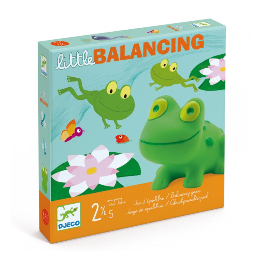 - Vsebuje: 1 deska za ribnik, razdeljena na dve polovici, 12 lilij, 12 lesenih ploščadi, 3 plastične žabe na dotik, 15 števcev. Izdelano iz papirja in kartona s certifikatom FSC®.