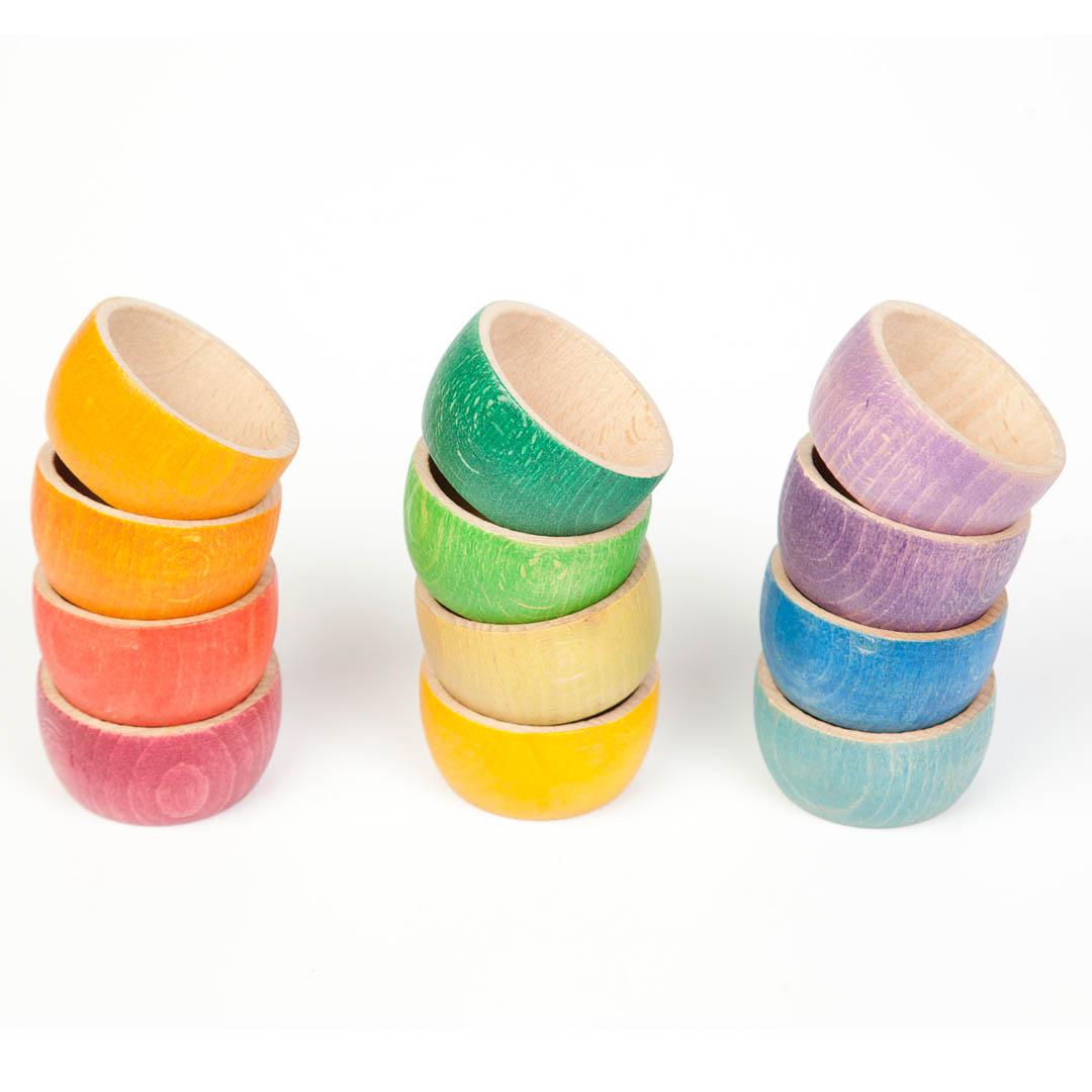 - Komplet vsebuje 12 lesenih skled v barvah mavrice.