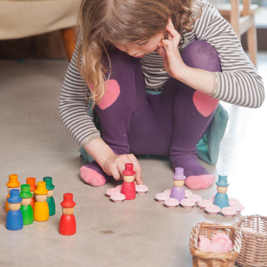 - Komplet vsebuje 12 figur v različnih odtenkih, vsaka meri v višino približno 7 cm. Poleg pride tudi vrečka za shranjevanje iz blaga.