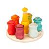 Grapat je majhno družinsko podjetje iz Katalonije, ki je nastalo iz želje družine po odhodu iz mesta in po življenju v naravnem okolju podeželja. Podjetje išče navdih za svoje igrače v naravnem pristopu in v ideji, da otroci potrebujejo le nekaj osnovnih delov, da ustvarijo svoj domišljijski svet. V osrčju njihove ponudbe so preproste lesene figure, lončki, skodelice, razni deli in oblike v naravnih, sezonskih odtenkih. Za nepoznavalca morda na prvi pogled izgledajo celo preveč preprosto – največkrat si igranje z njimi predstavljamo le v obliki sortiranja ali ustvarjanja vzorcev. Če pa jih date v roke otroku, boste kmalu spoznali, kako čarobne so. Te igrače navdihujejo ustvarjalno in domišljijsko igro, ki lahko otroke za več ur popolnoma prevzame. Predstavljajte si jih, kot material za ustvarjanje, in ne kot klasične igrače, ki usmerjajo igro in ideje. Tako kot krede za risanje ali barve za slikanje, igrače Grapat navdihujejo otrokovo ustvarjalnost in svobodno izražajo njihov čudovit notranji svet. Preberite več o blagovni znamki, ali si oglejte celotno ponudbo Grapat v naši trgovini.