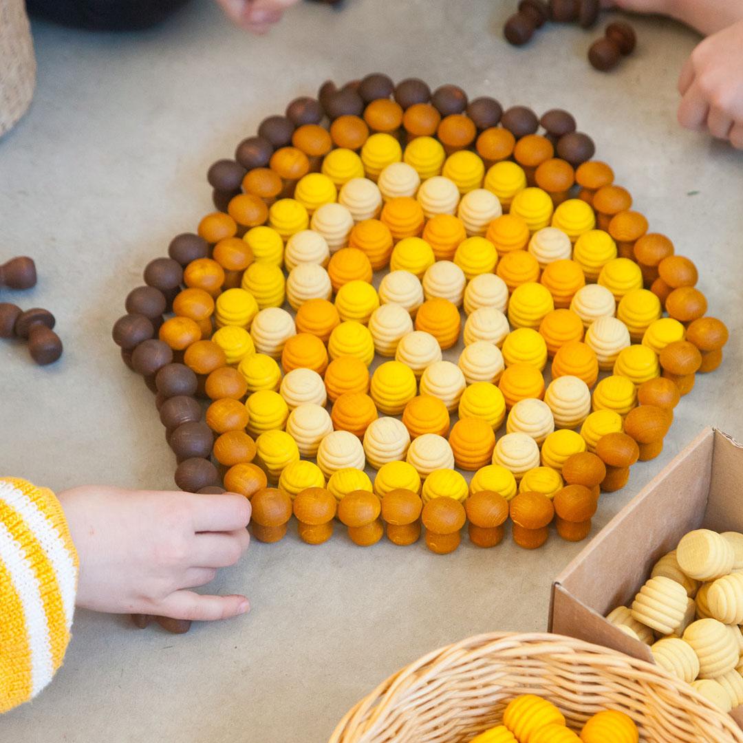 Grapat je majhno družinsko podjetje iz Katalonije, ki je nastalo iz želje družine po odhodu iz mesta in po življenju v naravnem okolju podeželja. Podjetje išče navdih za svoje igrače v naravnem pristopu in v ideji, da otroci potrebujejo le nekaj osnovnih delov, da ustvarijo svoj domišljijski svet. V osrčju njihove ponudbe so preproste lesene figure, lončki, skodelice, razni deli in oblike v naravnih, sezonskih odtenkih. Za nepoznavalca morda na prvi pogled izgledajo celo preveč preprosto – največkrat si igranje z njimi predstavljamo le v obliki sortiranja ali ustvarjanja vzorcev. Če pa jih date v roke otroku, boste kmalu spoznali, kako čarobne so. Te igrače navdihujejo ustvarjalno in domišljijsko igro, ki lahko otroke za več ur popolnoma prevzame. Predstavljajte si jih, kot material za ustvarjanje, in ne kot klasične igrače, ki usmerjajo igro in ideje. Tako kot krede za risanje ali barve za slikanje, igrače Grapat navdihujejo otrokovo ustvarjalnost in svobodno izražajo njihov čudovit notranji svet. Preberite več o blagovni znamki, ali si oglejte celotno ponudbo Grapat v naši trgovini.