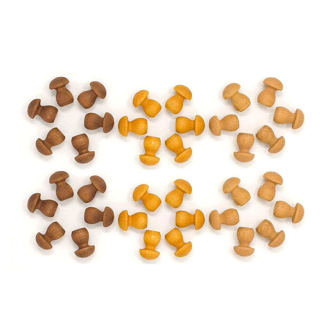 - Komplet vsebuje 36 gob v treh odtenkih rjave barve, ki v višino merijo približno 3,2 cm.