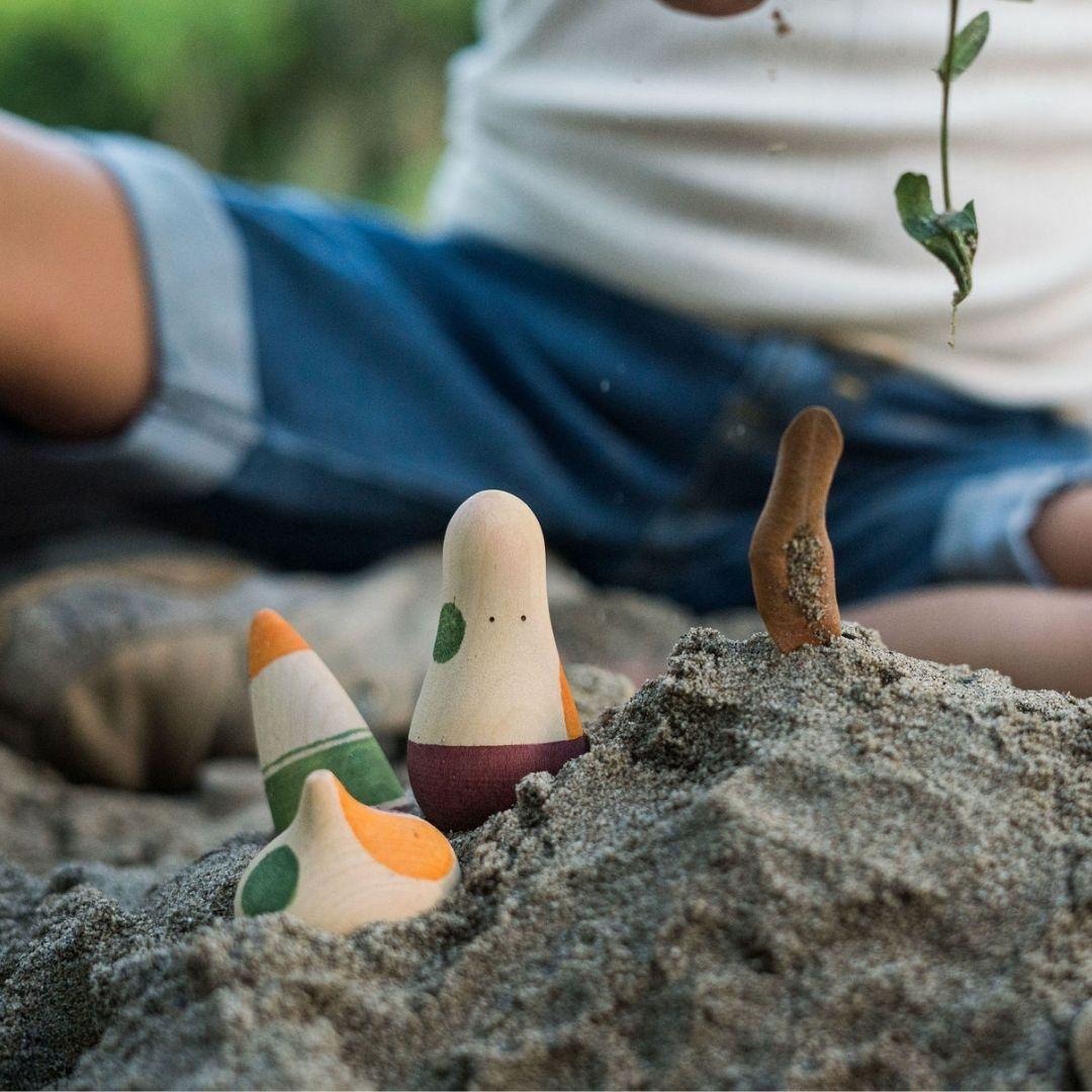 Grapat je majhno družinsko podjetje iz Katalonije, ki je nastalo iz želje družine po odhodu iz mesta in po življenju v naravnem okolju podeželja. Podjetje išče navdih za svoje igrače v naravnem pristopu in v ideji, da otroci potrebujejo le nekaj osnovnih delov, da ustvarijo svoj domišljijski svet. V osrčju njihove ponudbe so preproste lesene figure, lončki, skodelice, razni deli in oblike v naravnih, sezonskih odtenkih. Za nepoznavalca morda na prvi pogled izgledajo celo preveč preprosto – največkrat si igranje z njimi predstavljamo le v obliki sortiranja ali ustvarjanja vzorcev. Če pa jih date v roke otroku, boste kmalu spoznali, kako čarobne so. Te igrače navdihujejo ustvarjalno in domišljijsko igro, ki lahko otroke za več ur popolnoma prevzame. Predstavljajte si jih, kot material za ustvarjanje, in ne kot klasične igrače, ki usmerjajo igro in ideje. Tako kot krede za risanje ali barve za slikanje, igrače Grapat navdihujejo otrokovo ustvarjalnost in svobodno izražajo njihov čudovit notranji svet. Preberite več o blagovni znamki, ali si oglejte celotno ponudbo Grapat v naši trgovini.