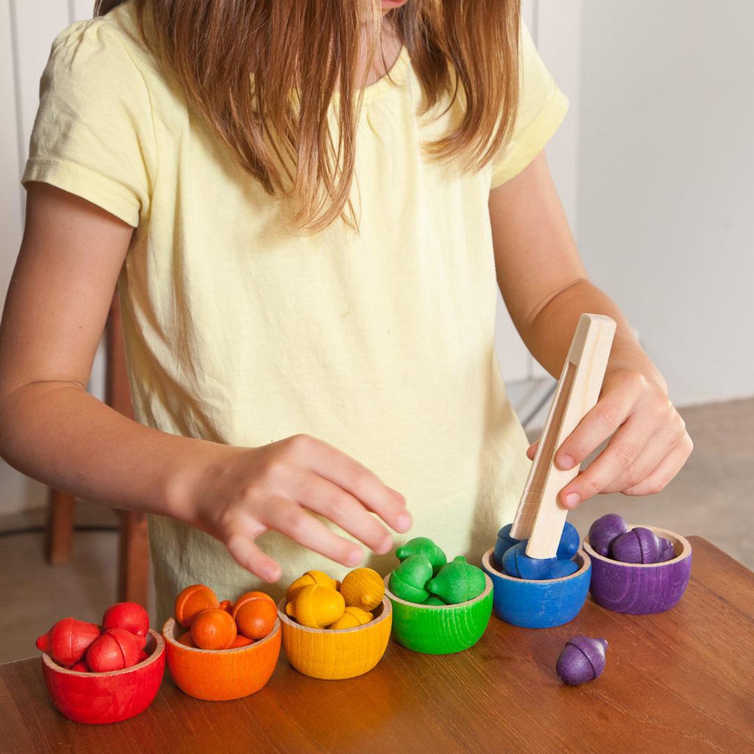 Grapat je majhno družinsko podjetje iz Katalonije, ki je nastalo iz želje družine po odhodu iz mesta in po življenju v naravnem okolju podeželja. Podjetje išče navdih za svoje igrače v naravnem pristopu in v ideji, da otroci potrebujejo le nekaj osnovnih delov, da ustvarijo svoj domišljijski svet. V osrčju njihove ponudbe so preproste lesene figure, lončki, skodelice, razni deli in oblike v naravnih, sezonskih odtenkih. Za nepoznavalca morda na prvi pogled izgledajo celo preveč preprosto – največkrat si igranje z njimi predstavljamo le v obliki sortiranja ali ustvarjanja vzorcev. Če pa jih date v roke otroku, boste kmalu spoznali, kako čarobne so. Te igrače navdihujejo ustvarjalno in domišljijsko igro, ki lahko otroke za več ur popolnoma prevzame. Predstavljajte si jih, kot material za ustvarjanje, in ne kot klasične igrače, ki usmerjajo igro in ideje. Tako kot krede za risanje ali barve za slikanje, igrače Grapat navdihujejo otrokovo ustvarjalnost in svobodno izražajo njihov čudovit notranji svet. Preberite več o blagovni znamki, ali si oglejte celotno ponudbo Grapat v naši trgovini.