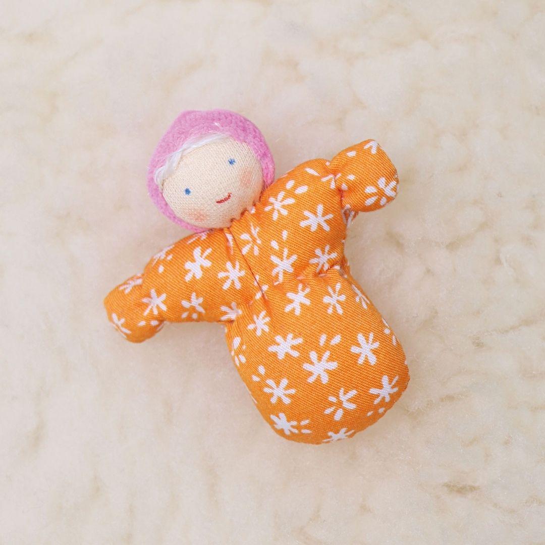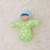 - Vzdrževanje: Lutko očistite samo z ročnim pranjem in bodite previdni in nežni pri umivanju obraza. Barve obraza so odporne na vodo, vendar lahko zbledijo.
