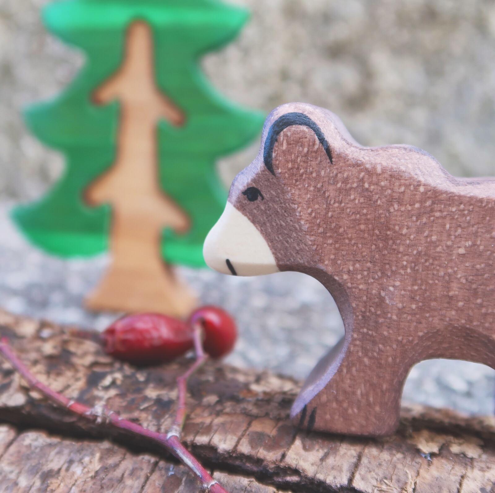 Holztiger izdeluje eno izmed najbolj kakovostnih in najobsežnejših vrst lesenih živali na svetu. Lesene figure so v Evropi ročno izdelane iz trdega lesa, večinoma javorja in bukve. So mehko zaobljene in ročno brušene, kar jim daje satenasto gladki videz, ki je prijeten na otip. Pobarvane so z varno, netoksično akvarelno barvo v svetlih, vendar naravnih zemeljskih barvah in so zaključene z lakom, odpornim na slino. So trpežne in velike: odlična velikost za dojenčke, da jih lepo zgrabijo, prav tako pa so idealne za zlaganje. Te igrače, ki jih navdihuje Waldorfska vzgoja, se lepo združijo z lesenimi kockami ali pa so odličen dodatek k naravnim mizam ali dekoraciji otroških sob. Več o blagovni znamki lahko preberete tukaj ali si ogledate celotno ponudbo Holztiger v naši trgovini.