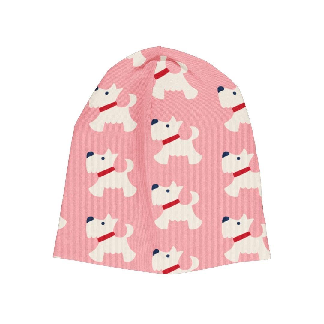 Zakaj ne bi otroški garderobi dodali kanček barve in trajnosti s to kapo iz organskega bombaža in vzorcem prikupnega kužka?