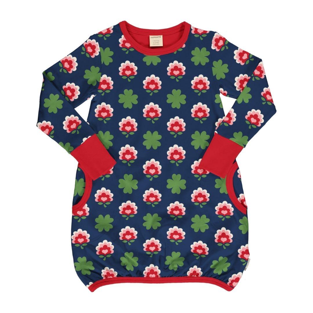 Zakaj ne bi otroški garderobi dodali kanček barve in trajnosti s to oblekico na balon z dolgimi rokavi iz organskega bombaža z vzorcem štiriperesne deteljice? Oglejte si našo tabelo velikosti Maxomorra in spodaj izberite svojo velikost.