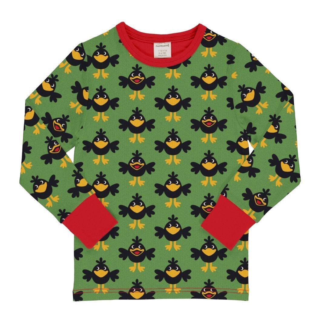 Zakaj ne bi otroški garderobi dodali kanček barve in trajnosti s tem topom z dolgimi rokavi iz organskega bombaža z vzorcem igrivih vran? Oglejte si našo tabelo velikosti Maxomorra in spodaj izberite svojo velikost.