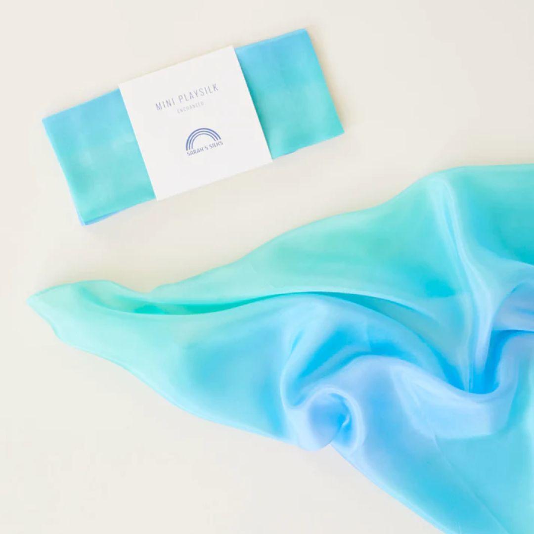 Sarah’s Silks je ameriško družinsko podjetje, ki se že več kot 25 let specializira za naravne igrače po vzoru Waldorfske pedagogike. V Sarah’s Silks verjamejo v čarobnost ustvarjalne igre, igrače pa so že desetletja stalnica waldorfskih vrtcev in igralnic! Za svoje izdelke uporabljajo 100% kitajsko svilo, obarvano z živahnimi in okolju-prijaznimi barvami. Nežna do mati Zemlje, je svila naravno vlakno, ki se zlahka razgradi in se vrne v zemljo, jo napolni in nahrani. Sarah’s Silks igrače spodbujajo otroško domišljijo in ujamejo čarobno dušo, ki živi v njih. Ponujajo neskončne možnosti odprtega tipa: popolne so za igro oblačenja ali igro vlog, igro malega sveta ali za samoizražanje, kot je ples. Svilene rutke so naravno lahke in prozorne, premikajo se in letijo na veličasten način. Sarah’s Silks veganom prijazna alternativa so tudi bombažna igralna oblačila.