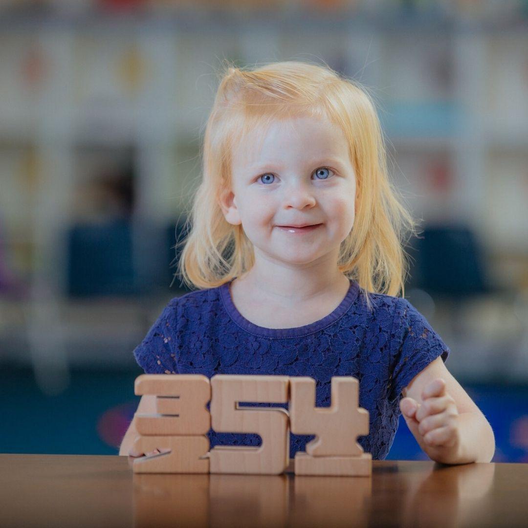 - Začetni set vsebuje 27 kock iz trdega lesa: 10 enk, 1 desetko in po 2 kocki številk 2, 3, 4, 5, 6, 7, 8, 9