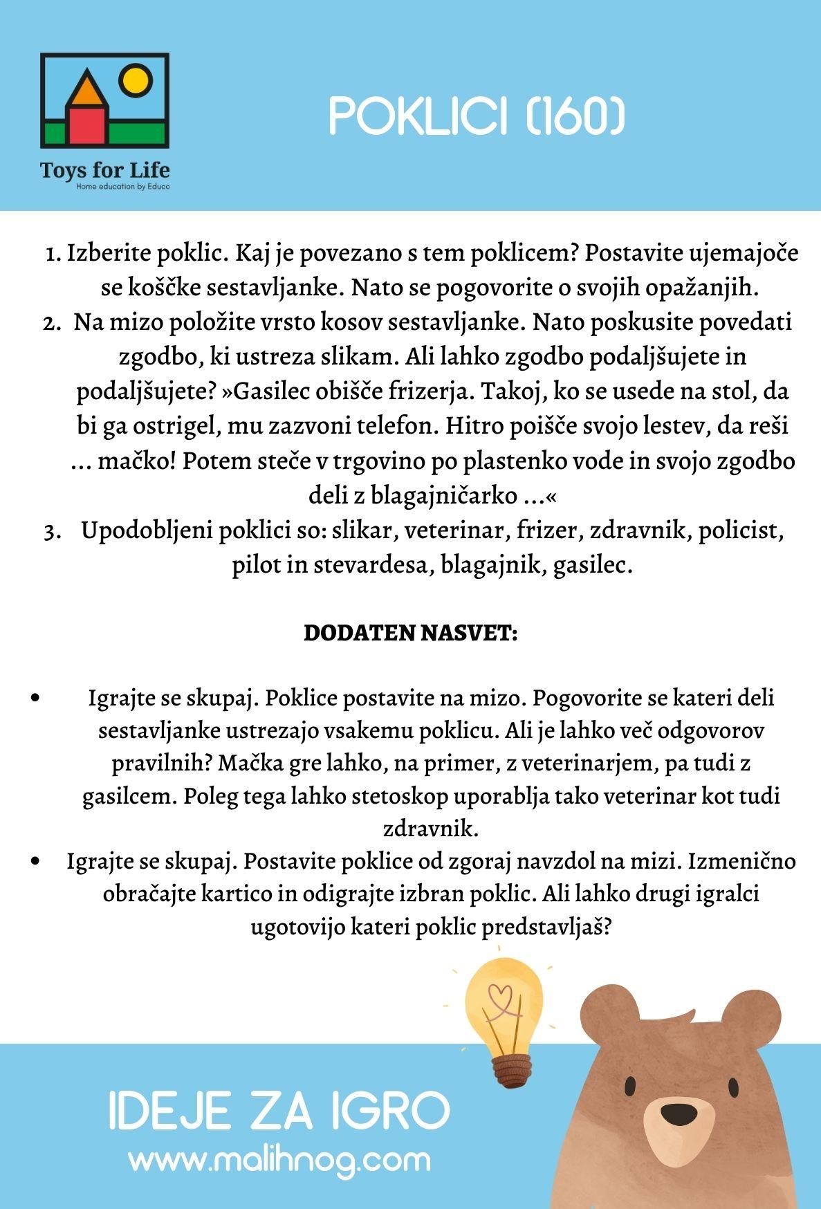 - Vključuje 24 lesenih slikovnih kartic. Pride v magnetni škatli (21 x 12 x 6 cm).