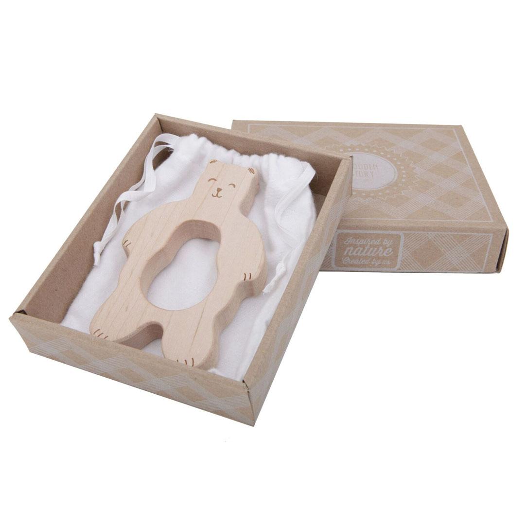 Izdelki Wooden Story so naravni izdelki najvišje kakovosti, rokodelsko narejeni in z eko certifikatom. Izdelani so iz skrbno izbranega lesa s FSC-certifikatom in ne vsebujejo nobenih škodljivih kemikalij. Vsak kos ima edinstven odtenek ali barvo – ima svojo značilno leseno zgodbo , ki se lahko s časom celo razvije. Igrače so zbrušene do potankosti, so mehke na otip in premazane s čebeljim voskom in botaničnimi olji. Vsi kosi v barvni liniji so pobarvani s 100% naravnimi, eko-certificianimi barvami. Zaradi naravnega premaza se lahko ob rednem stiku z vodo ali slino barva obrabi ali pušča madeže. Lahko ste prepričani, da so kljub temu igrače popolnoma neškodljive in varne. Vsi izdelki Wooden Toys so skladni z Evropsko direktivo za igrače (DIN EN 71), zapakirani pa so v čudovite kartonaste škatle ali platnene vrečke, ki so zasnovane za ponovno uporabo ali enostavno recikliranje.