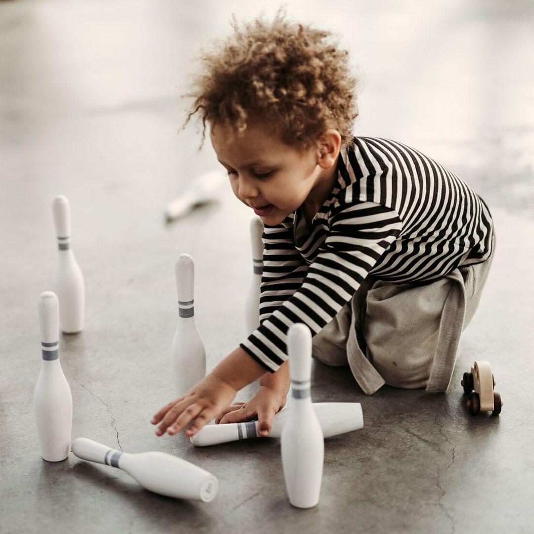 - Set vključuje 10 kegljev (cca. ,8 x 4,8 x 22,5 cm) in 2 krogli za kegljanje. Dobite ga v priročni vrečki, ki jo lahko uporabite kot nahrbtnik.